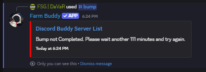 If it has been less than 2 hours since the last bump, the bot sends a private message telling the user how many minutes are left before they can bump again.